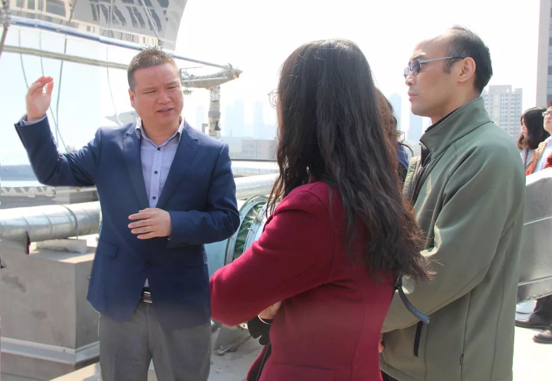 安捷物聯(lián)創(chuàng)新中心副主任王立波帶領(lǐng)參觀頂層太陽(yáng)能裝置