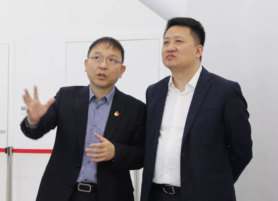 董事長劉柏呈為北大資源副總裁蘇華講解安捷最新技術(shù)