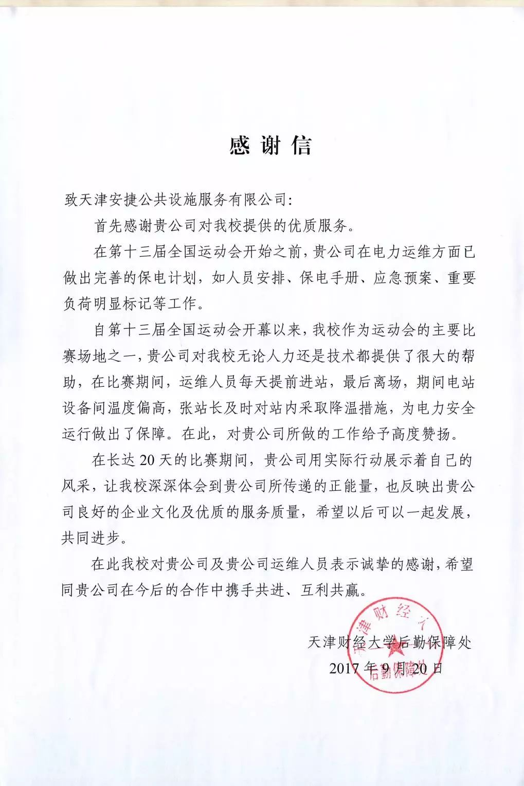 截至目前,安捷物聯(lián)已經(jīng)為北京大學、北京外國語大學、天津大學、天津工業(yè)大學、天津理工大學、天津外國語大學、天津財經(jīng)大學等二十多家高校提供最專業(yè)且安心的新型校園智能服務。優(yōu)質(zhì)的服務得到高校用戶認可,各高校紛紛發(fā)來感謝信和錦旗。