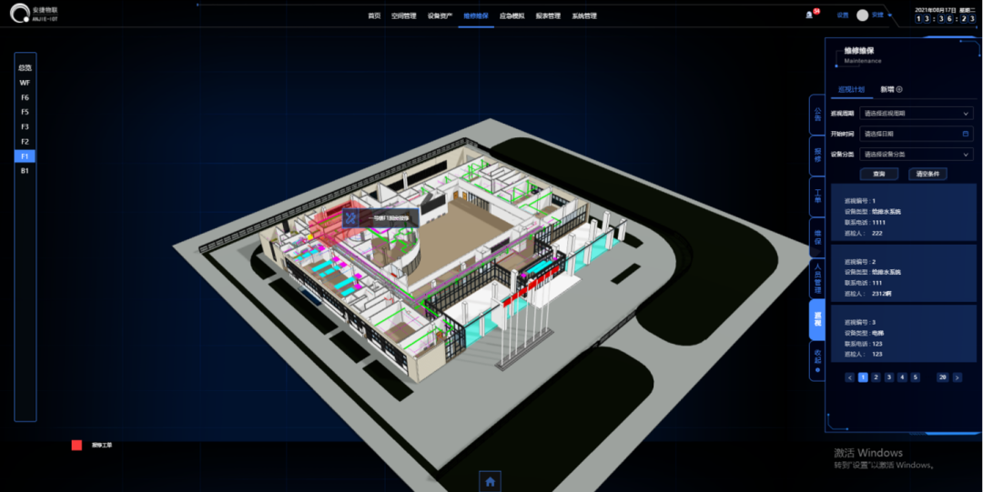 基于完整知識產權的BIM三維圖形引擎與開發(fā)維護計劃、資產管理、災害應急模擬等運維管理軟件,安捷物聯(lián)形成了系統(tǒng)的運維BIM軟件方案,自主研發(fā)出【基于BIM可視化運營管理平臺V1.0】,此平臺在課題中成功應用,并取得了一定成果。