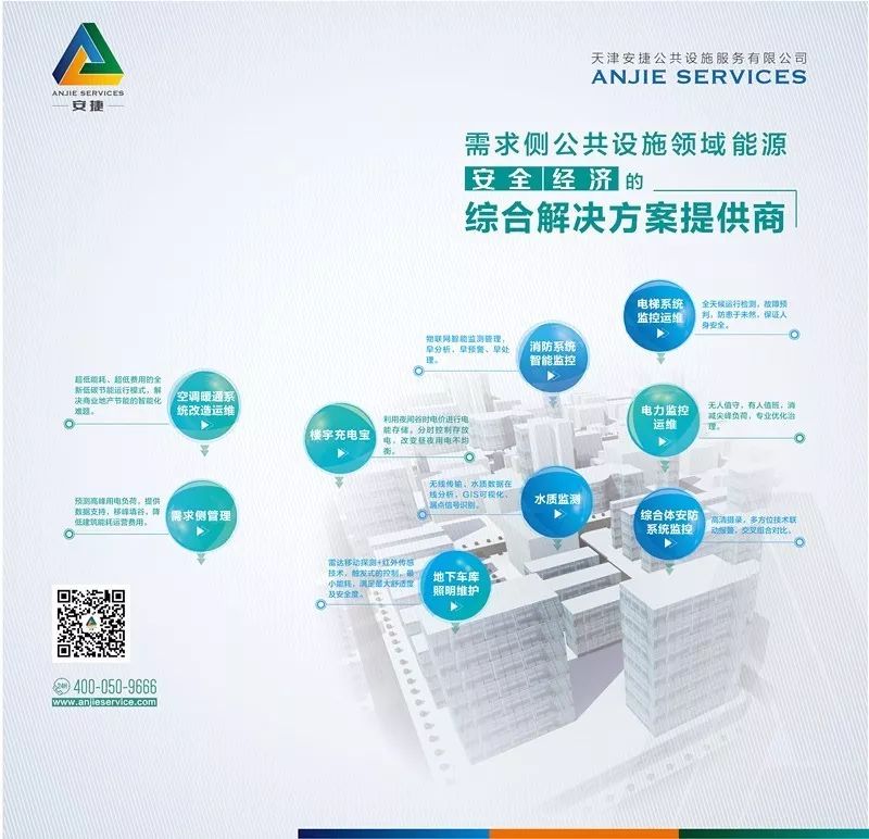 針對于商業(yè)地產(chǎn)等智能樓宇建筑,安捷物聯(lián)可提供樓宇電力系統(tǒng)監(jiān)測運(yùn)維、需求側(cè)管理、樓宇充電寶、供熱系統(tǒng)改造與運(yùn)維、空調(diào)系統(tǒng)節(jié)能改造、電梯系統(tǒng)監(jiān)控與運(yùn)維、消防系統(tǒng)的監(jiān)測、地下車庫及樓宇照明監(jiān)控、樓宇安防系統(tǒng)的監(jiān)控以及生活用水系統(tǒng)的監(jiān)測。